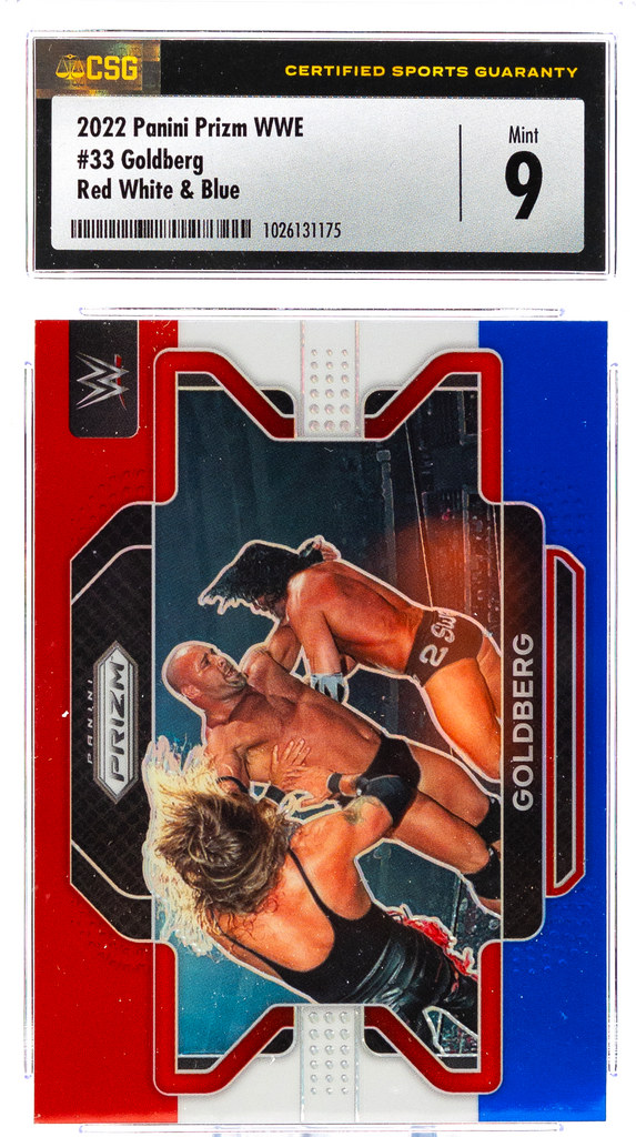 2022 Panini Prizm WWE – Goldberg 33 – Red White & Blue – CSG CGC 9