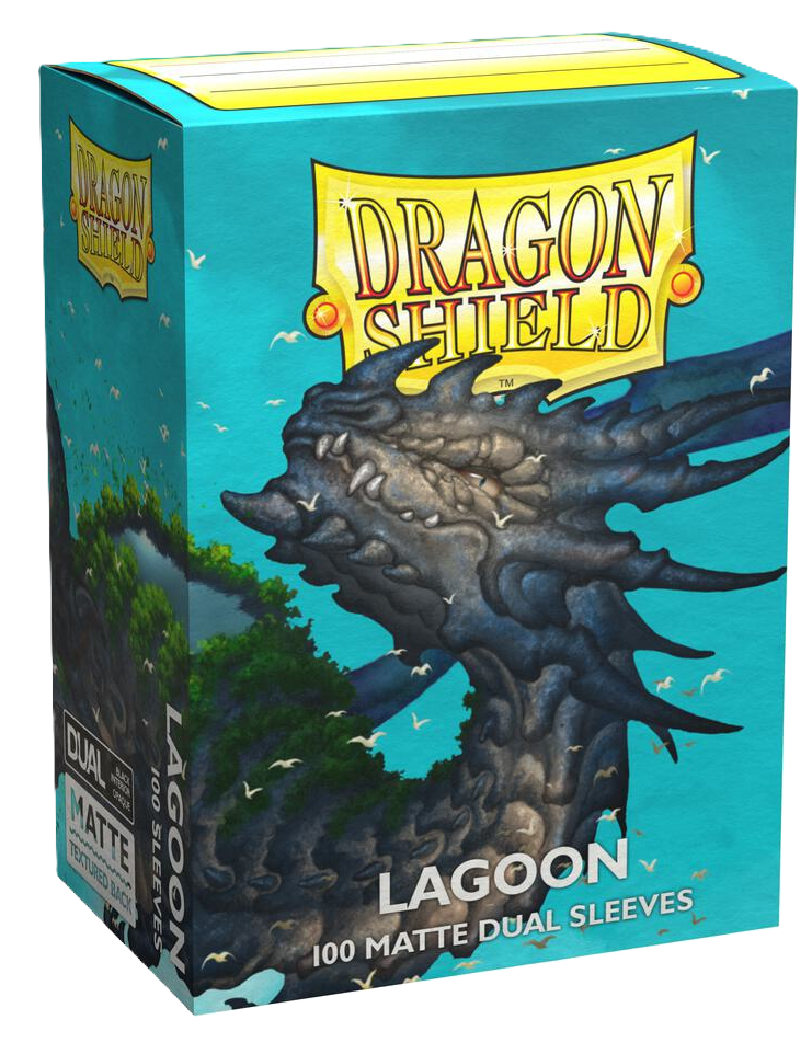 Dragon Shield Matte Dual sleeves. Clear front and a textured matte back. Fully opaque sleeves with a black interior, an elegant backdrop for black bordered cards.