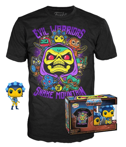 Summon the evil warriors of Skeletor with the Masters of the Universe Skeletor Evil Warriors Pop! Tee! Second-in-command to Skeletor, Evil-Lyn is plotting to seize power over your Masters of the Universe collection as an exclusive, glow-in-the-dark Pop! Evil-Lyn. This Pop! & Tee bundle will have you ready to take on the challenges of overtaking Eternia! This versatile and comfortable blue, short-sleeved crewneck tee can be paired with shorts for warmer days. Or, you could layer it with a button-down shirt and slacks for cooler weather.